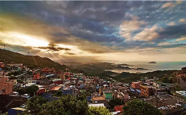 九份的房屋順應山勢,鱗次櫛比地蓋在一起,狹窄的街道和陡直的石階,高高低低,彎彎曲曲,是九份最具特色的景觀,行走時,你感覺像是走在住家的屋頂上。