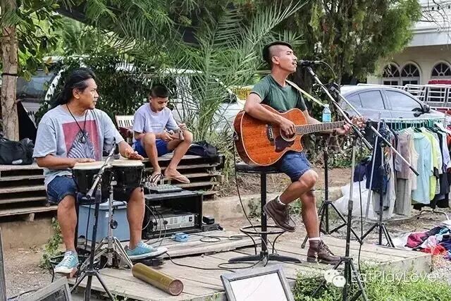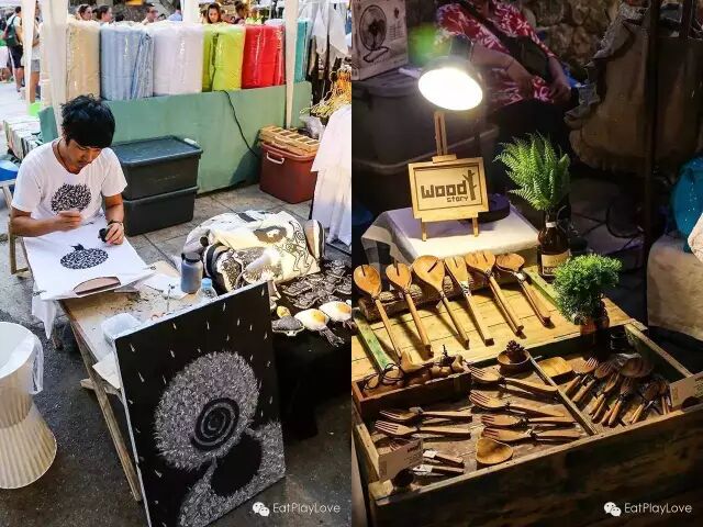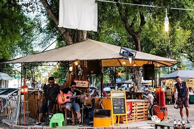 夜市的面積不大,主要由一片的空地連接了兩條主幹道,空地空地上還有個小舞台,我們去的那天有一班學生 在表演,有種原生態的萌。舞台前面放眼望去全是小食攤(是非常好吃的小食攤)!而兩條主幹道除了地攤,還有商舖,種類也多元化一點,有懷舊飲品店、民 宿、二手波鞋、服飾、文藝創意小店,當然少不了很多好吃的。這裡的食物幾乎全部都只要THB20一份(就是只要5塊軟妹幣),這麼便宜又這麼好吃,真是叫人感動連連!