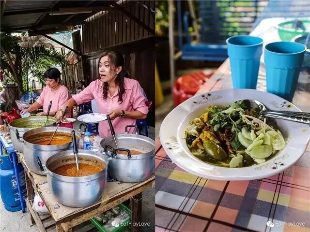 這家主打上面提到的Khanom chin還有即炸蝦餅,雖然我也搞不懂為嘛這麼熱的地方還那麼熱愛炸物,但是有清新的香料點綴的炸蝦餅還是要試試的。
