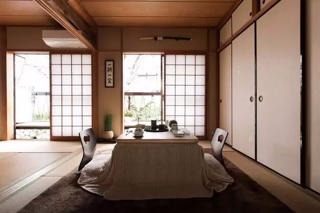 最愛的就是這種日式暖桌了吧!把門打開,與同行友人一邊賞著河畔美景,一邊圍著暖桌烹茶煮酒,多好!