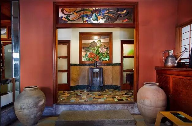 一樓有西式拱形天花板,還有許多彩色玻璃設計,這些西洋痕跡可以追溯到20世紀初,然而日式的門欄和內裝風格又讓你恍然這是在風韻無限的京都。